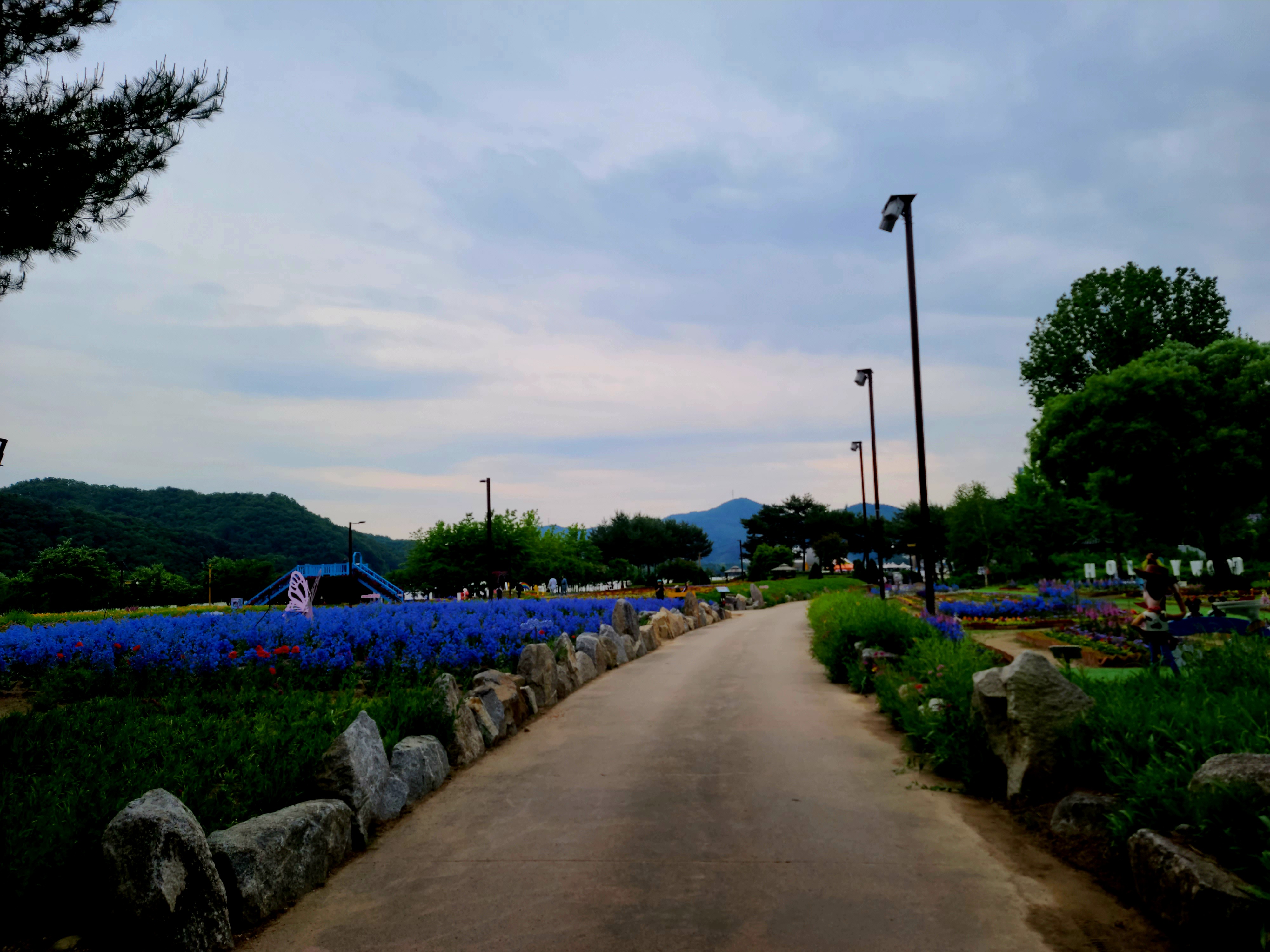 맨 처음 눈에 띄이는 것은 보라색? 코발트 블루? 느낌의 꽃밭이 눈에 들어오고, 그 다음에는 작은 꽃들의 향연,