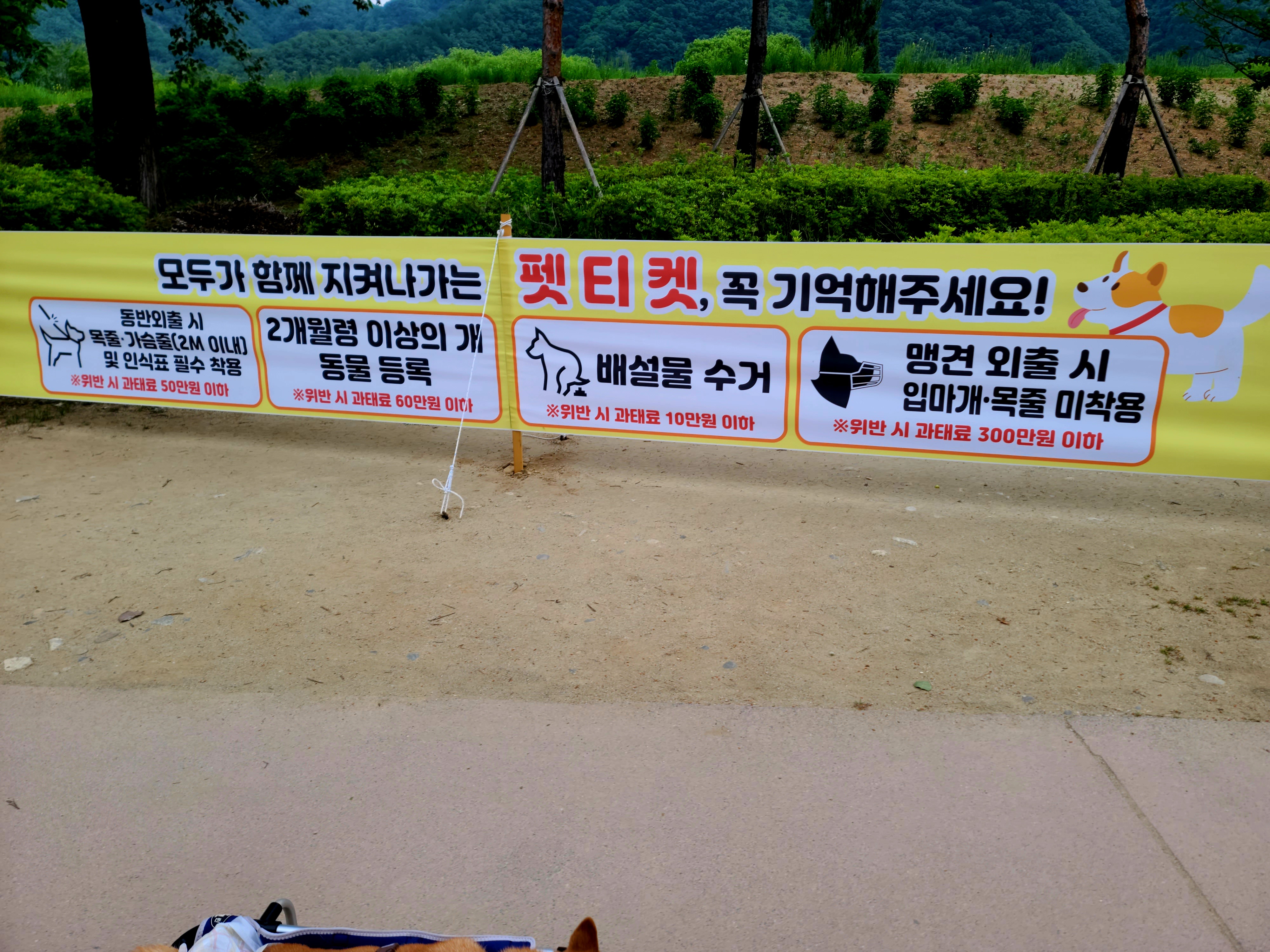 입구를 지나서 통로를 걷다 보면 펫티켓에 대한 안내 현수막이 있습니다.