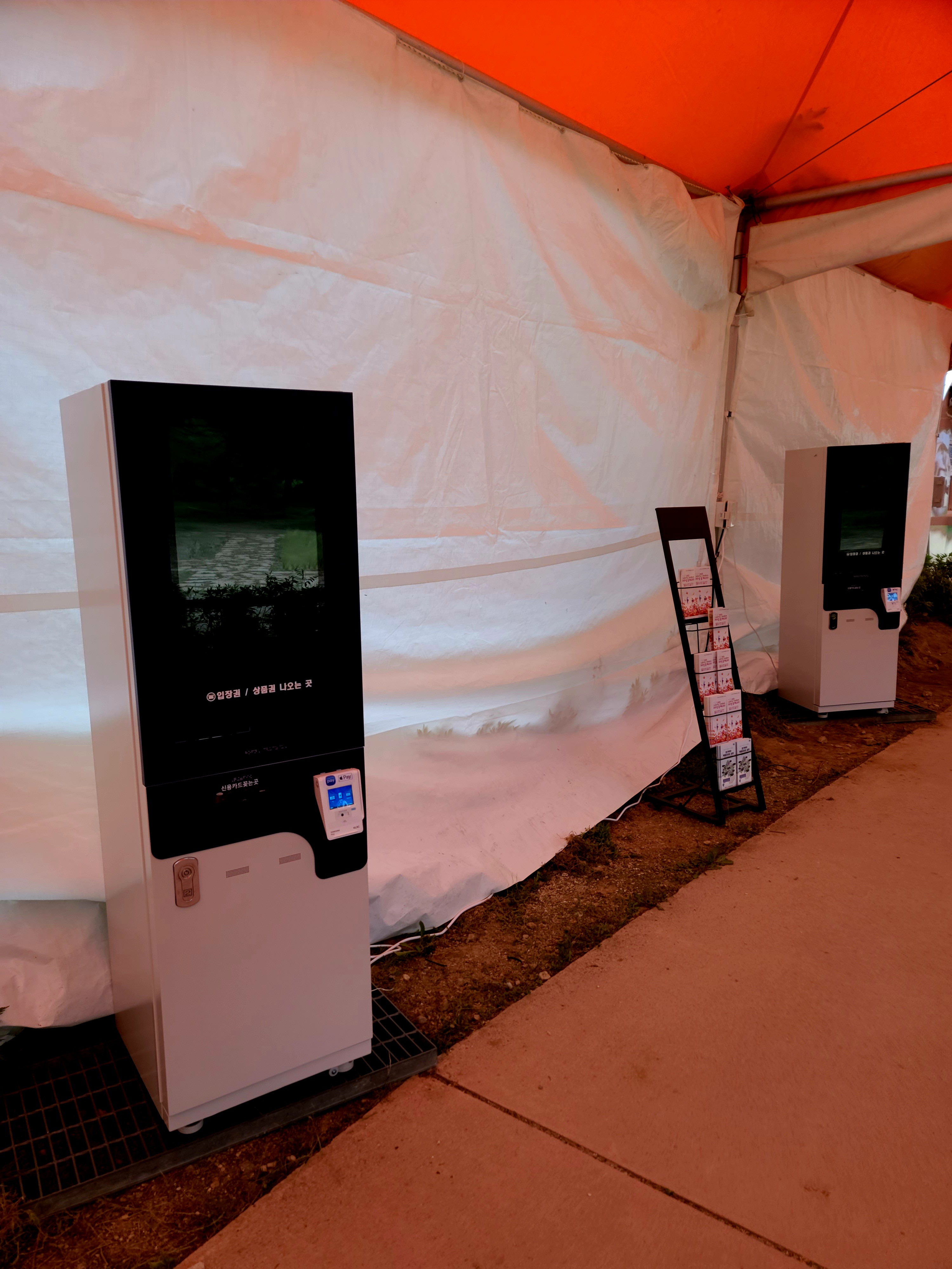 사진에는 없지만, 입장권 천막이 보일 때 쯤에 바닥에 관내 주민과 관외 주민의 줄이 따로 따로 적혀 있습니다.