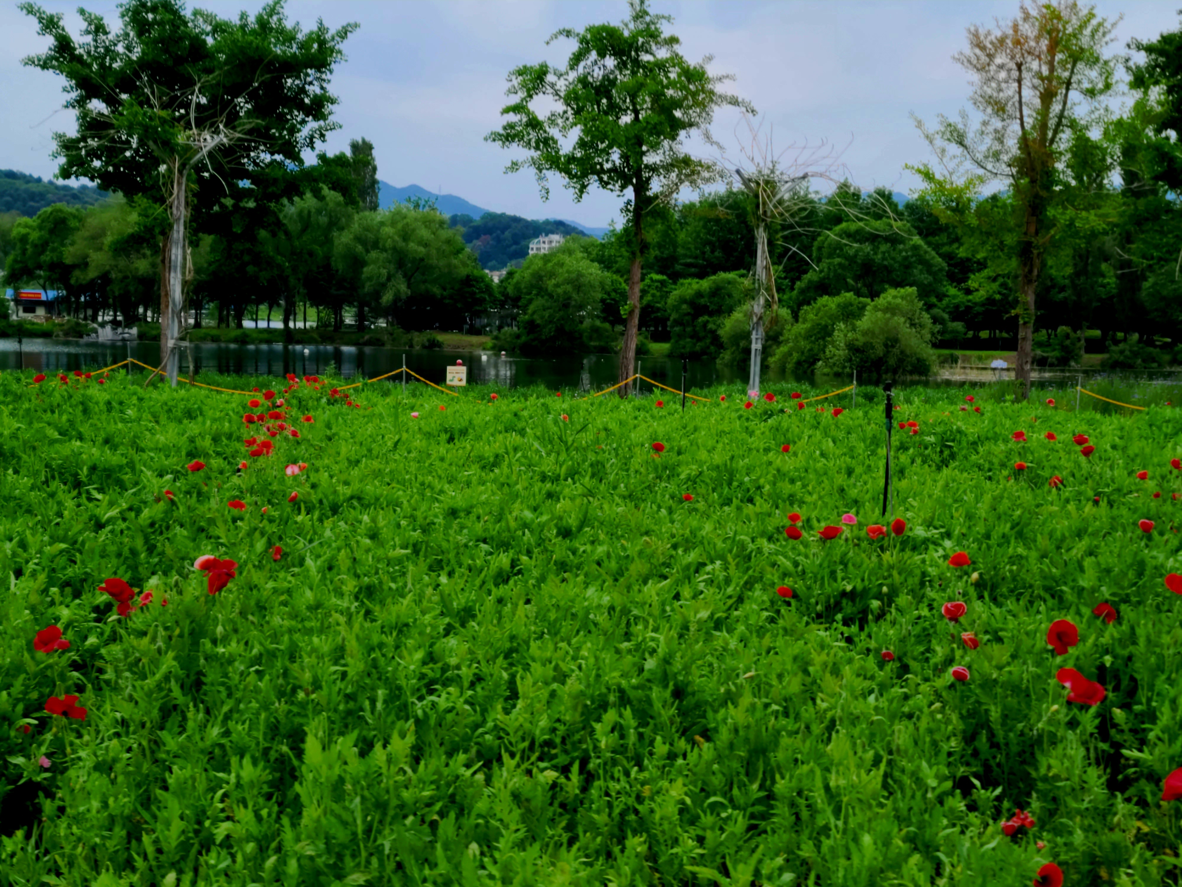 제일 먼저 반기는 것은 꽃 양귀비였습니다. 초록초록한 잎사이에 붉은 꽃들의 조화가 색감적으로 아름다웠습니다.