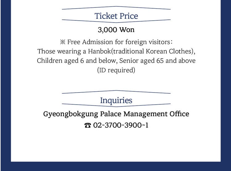 | 무료입장 | 한복 착용자, 65세 이상, 6세 이하 등 |