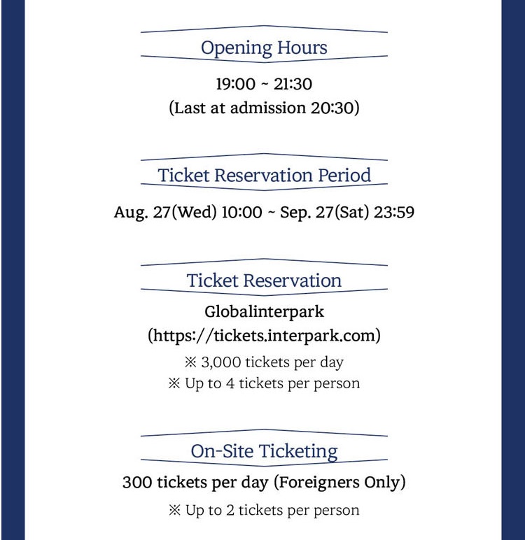 1년에 단 한 번, 한정 기간 동안만 열리는 야간개장인 만큼 미리 예약하고 여유롭게 즐기시기 바랍니다.