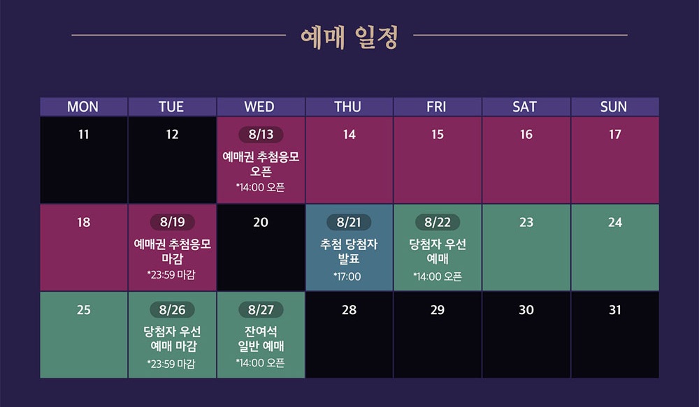 | 예매권 응모 | 2025.08.13(수) 14:00 ~ 08.19(화) 23:59 |