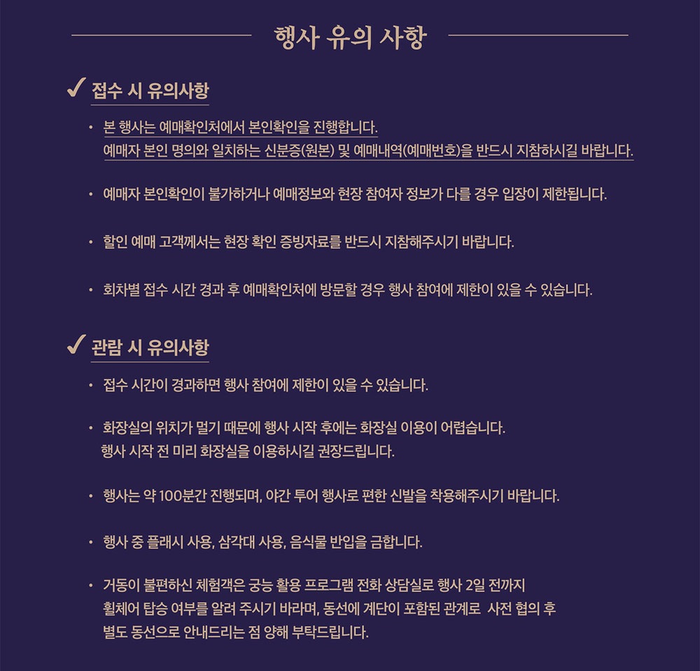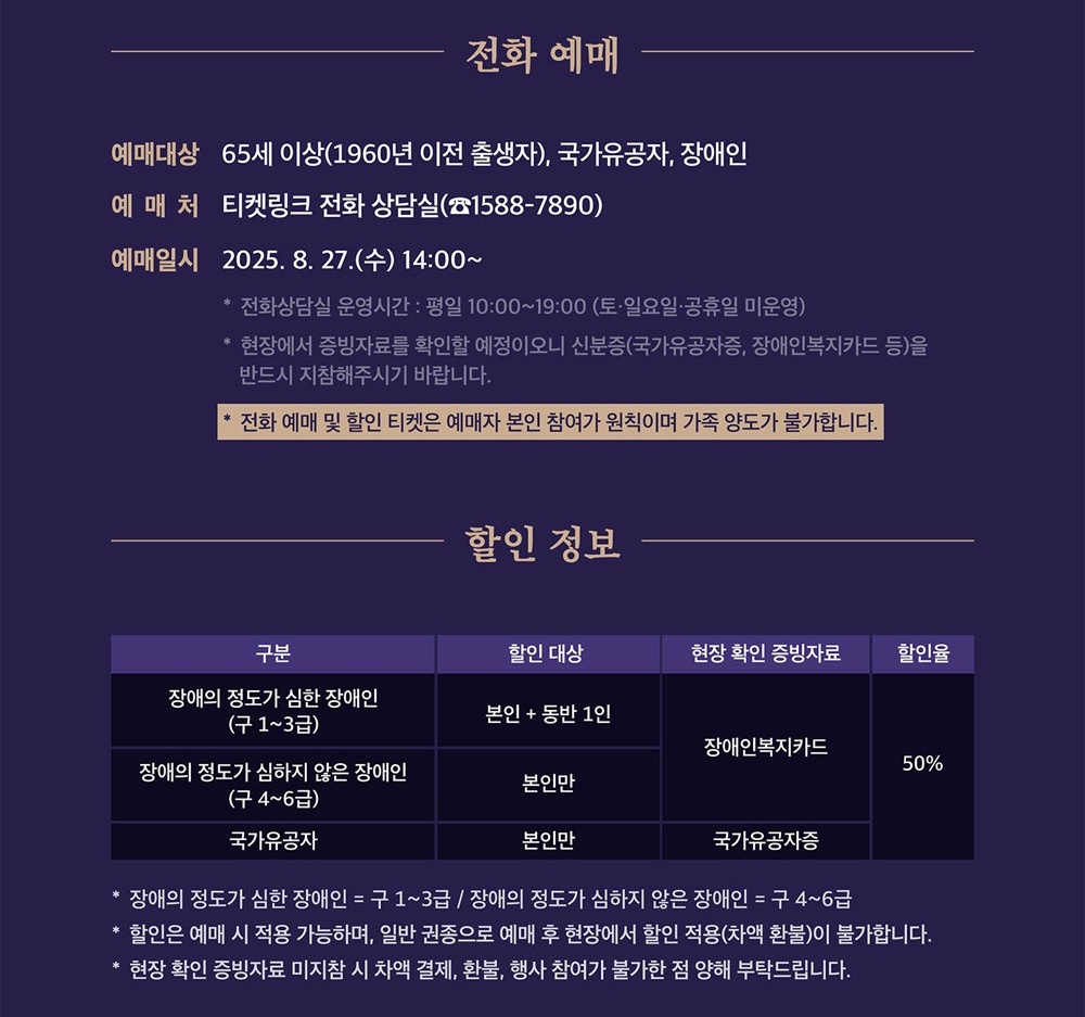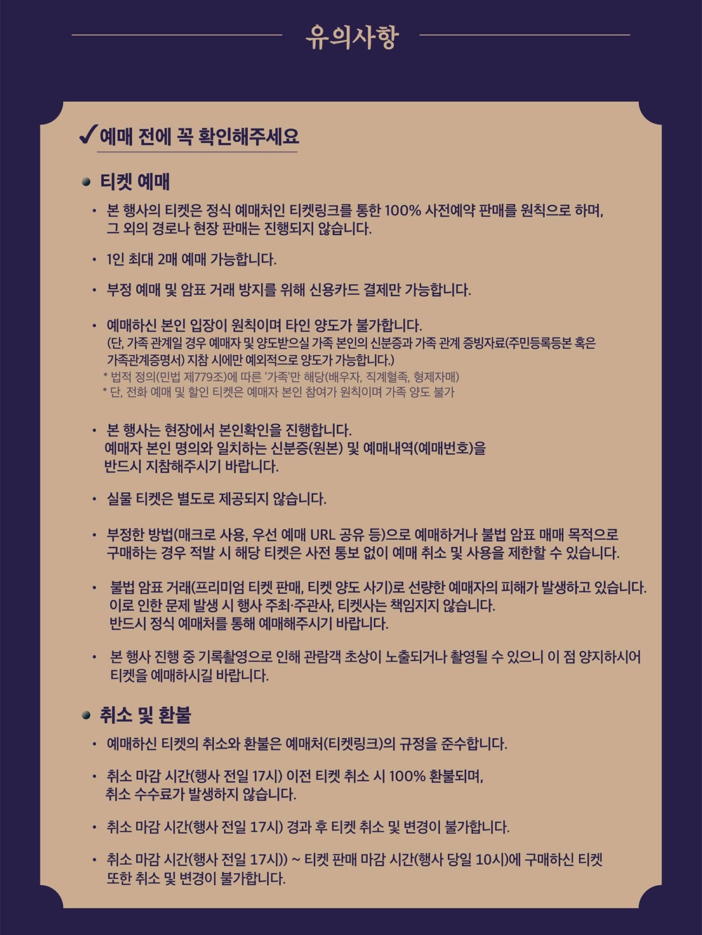 - 예매 취소: 행사 전일 17시까지 100% 환불