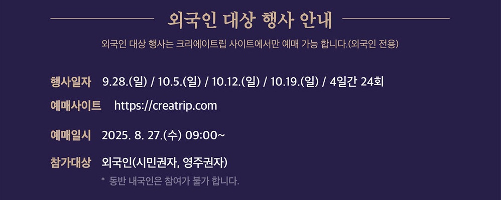 A. 외국인은 크리에이트립(creatrip.com)을 통해 별도 일정에 예약할 수 있습니다.