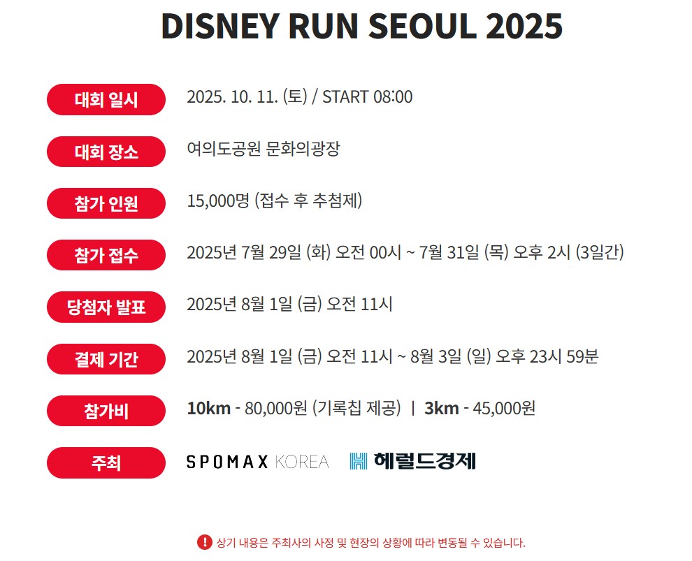 2025년 10월, 여의도에 디즈니가 찾아옵니다! 🌈 한정판 굿즈, 디즈니 캐릭터와 함께 달리는 특별한 하루를 원하신다면 지금 바로 확인하세요. 단 3일, 놓치면 1년을 기다려야 해요!