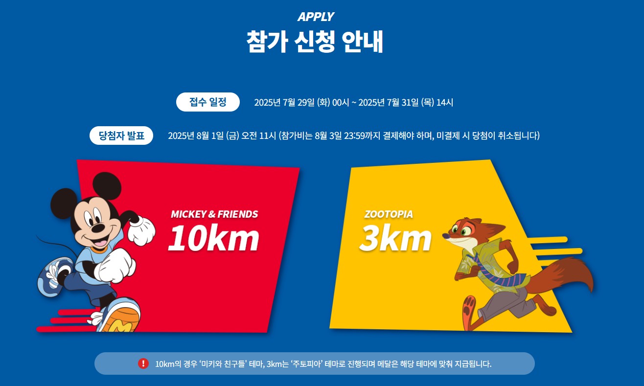 디즈니런은 단 3일간만 신청 가능하고, 15,000명 정원도 추첨제로 진행되기 때문에 미루면 놓칠 수 있어요.