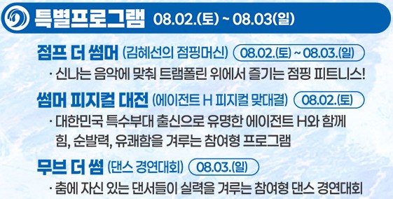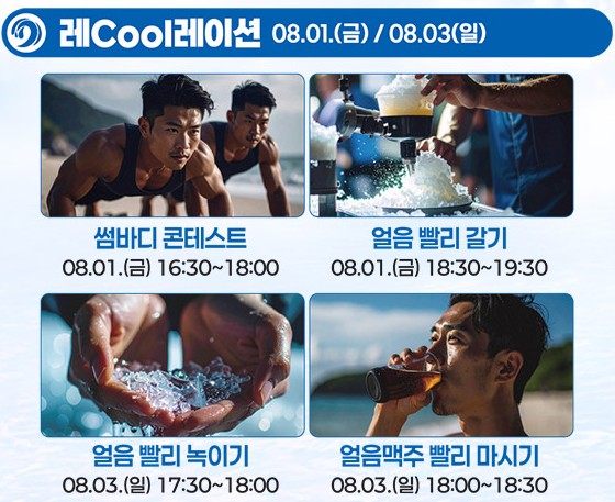 | 체험 | 비치 스포츠, 페이스 페인팅, 해변 포토존 |
