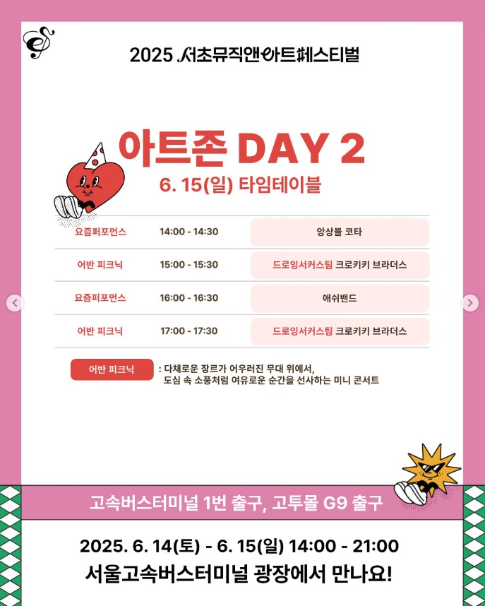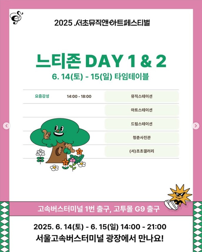 ✔ 아트존 → 뮤직존 → 느티존 순으로 동선 계획