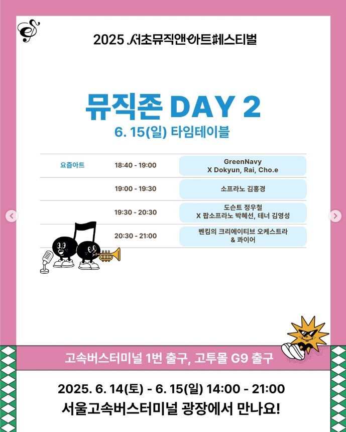 | 6.15 (일) | 18:40~19:00 | GreenNavy X Dokyun | 뮤직존 |