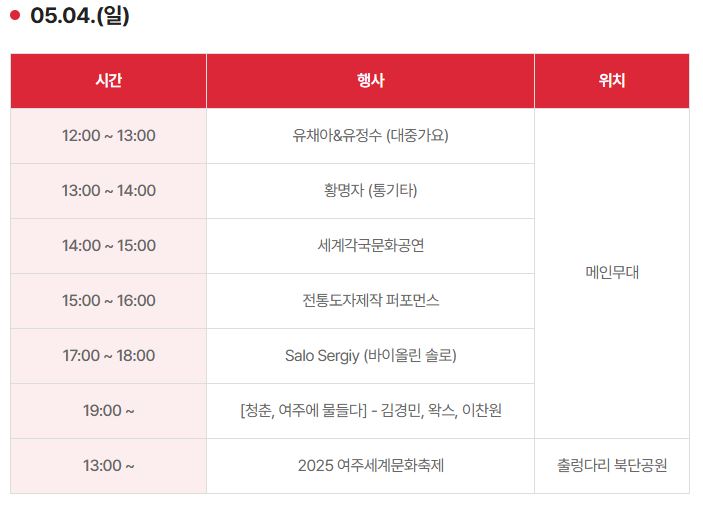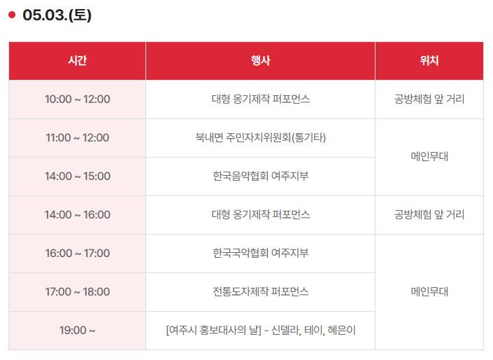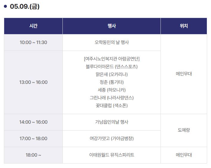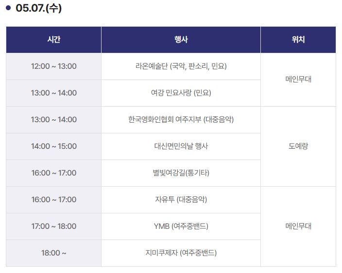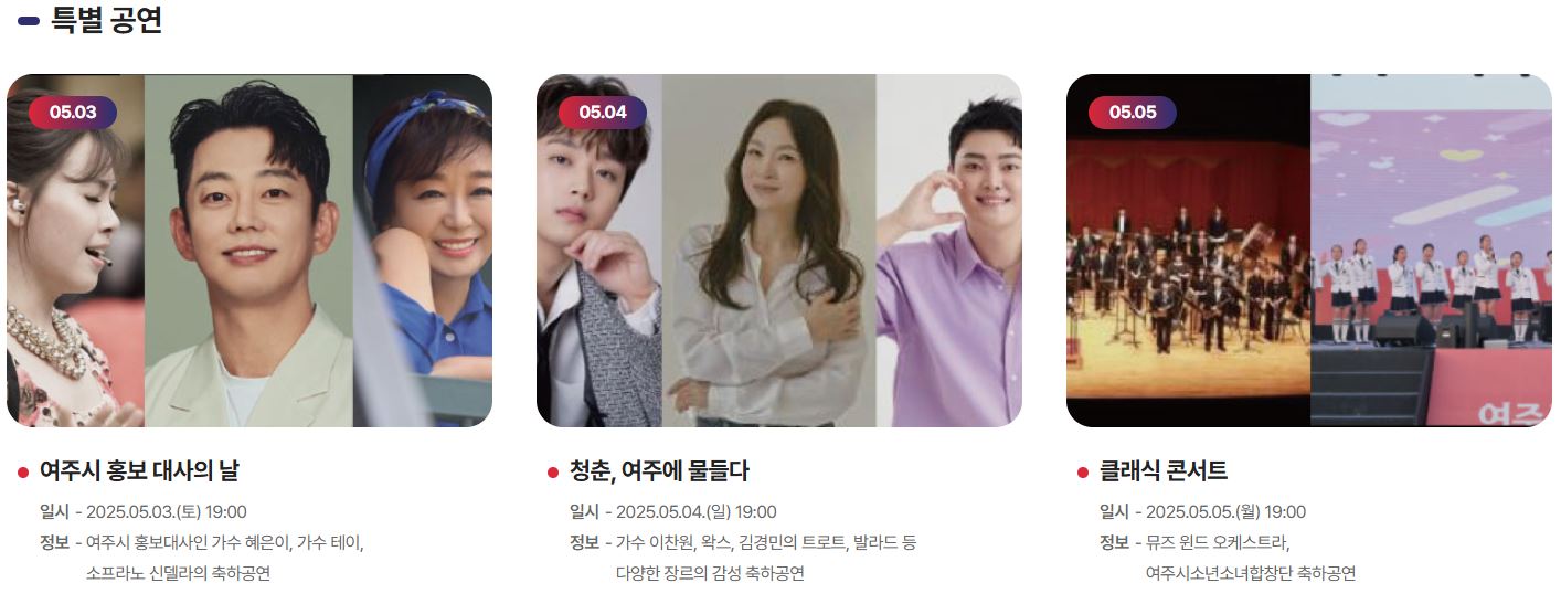 ※ 라인업은 현장 사정에 따라 변경될 수 있으며, 여주시청 공식 홈페이지 또는 축제 SNS를 통해 실시간 공지됩니다.