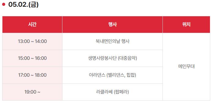 주차장: 축제장 인근 임시주차장 3곳 운영 (무료)