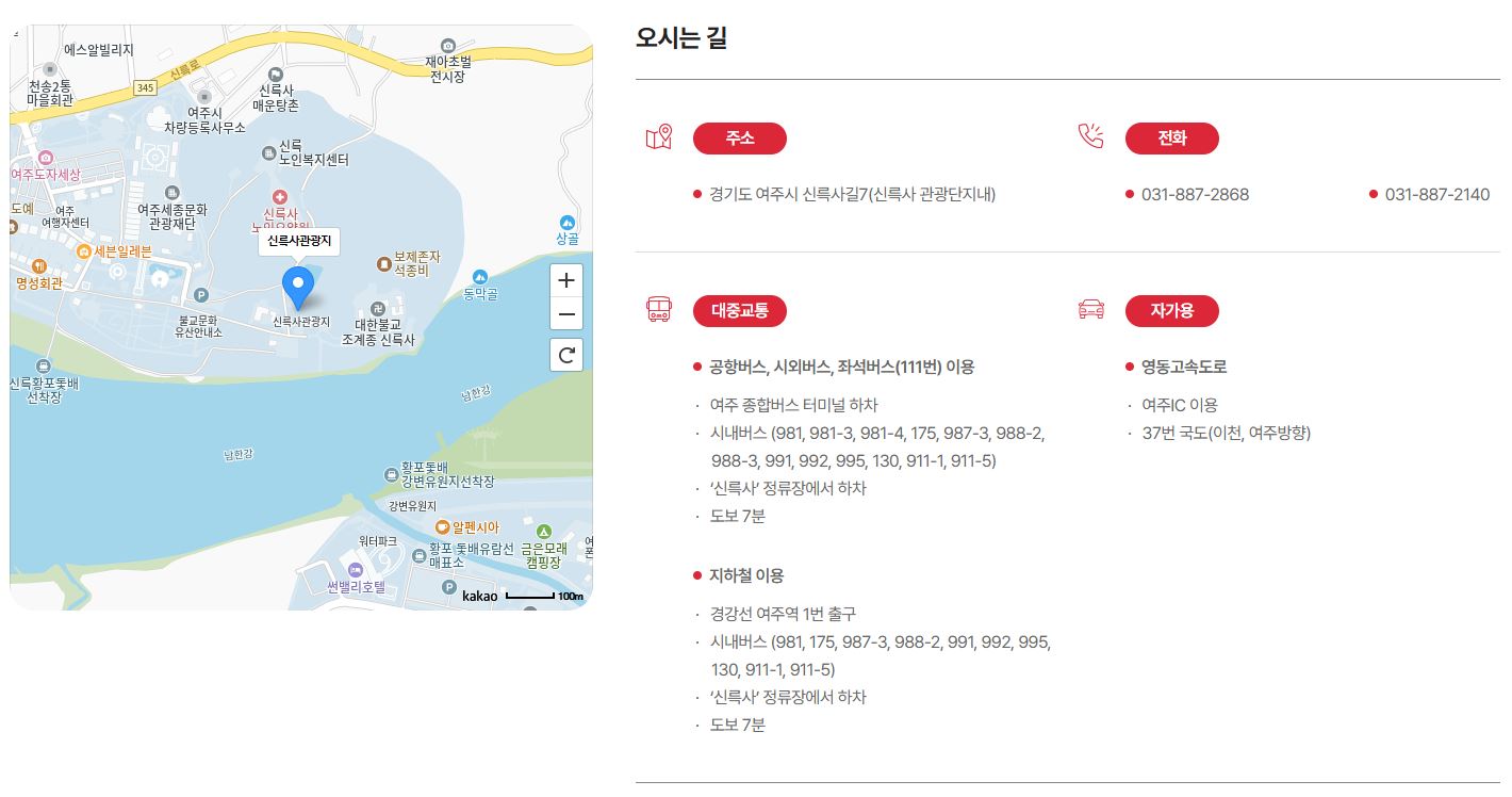 대중교통: 여주역 하차 후 무료 셔틀버스 운행