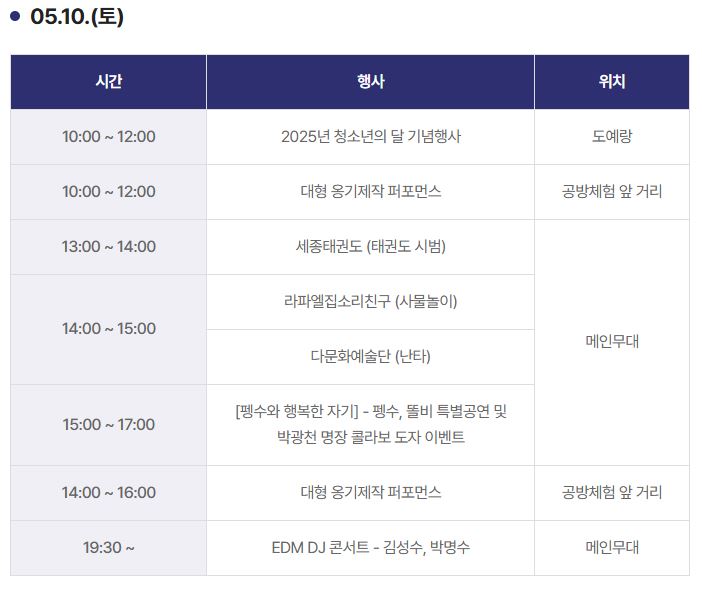 기간: 2025년 5월 1일(토) ~ 5월 11일(월)