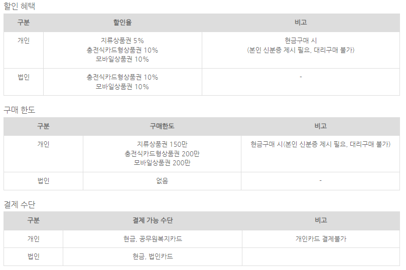 온누리 상품권 할인, 구매 한도, 결제 수단