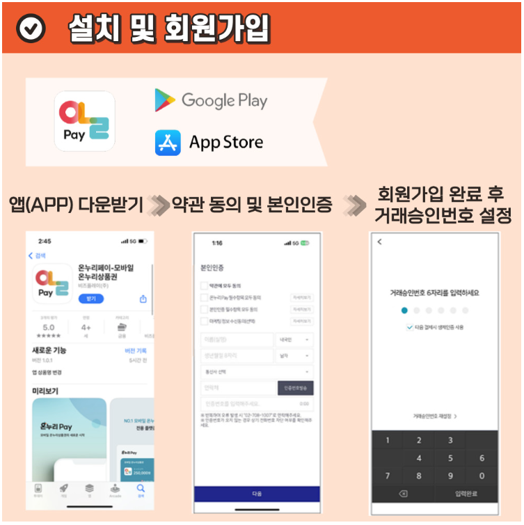 온누리상품권 앱에서 카드 및 계좌 등록 후 금액을 충전해 등록한 카드로 가맹점에서 사용