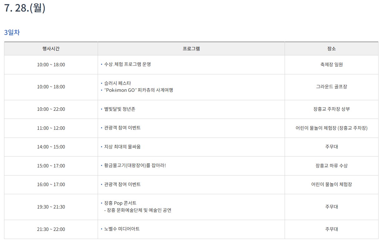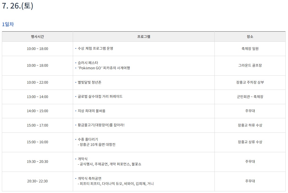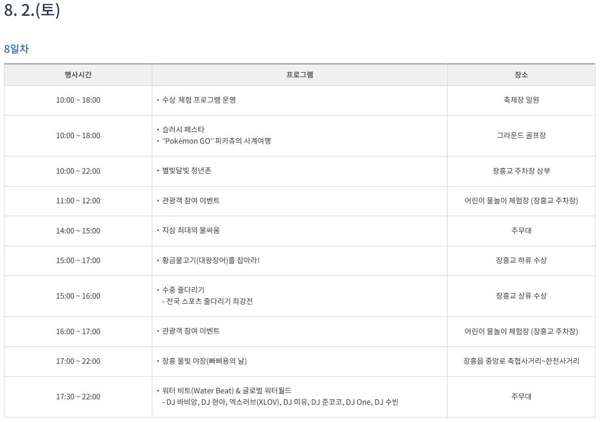 9일 동안 매일이 축제! 장흥 물축제 일정 정리