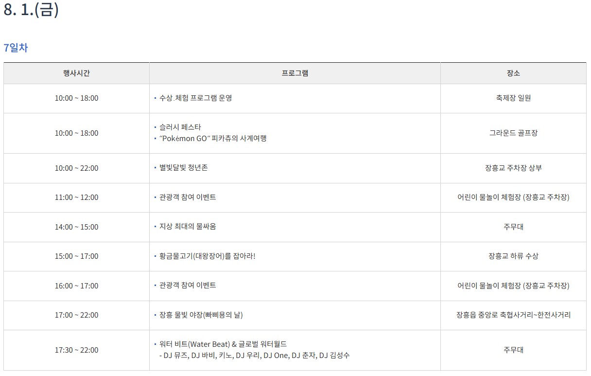 | 8.1~2(금~토) | DJ 워터파티 & 빠삐용의 날 | 중앙로 일원 |