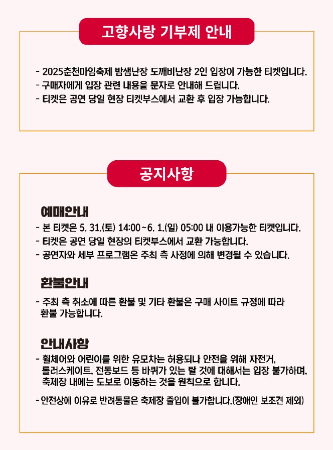 이 티켓은 2025년 5월 31일(토) ~ 6월 1일(일) 사이에만 사용 가능합니다.