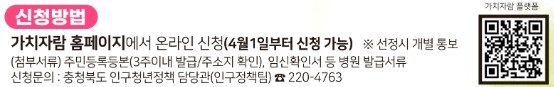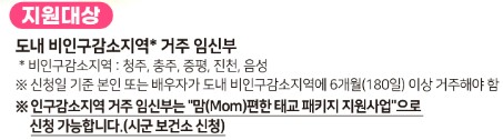 | 신청 대상 | 비인구감소지역 거주 임산부 (청주, 충주, 증평, 진천, 음성) |