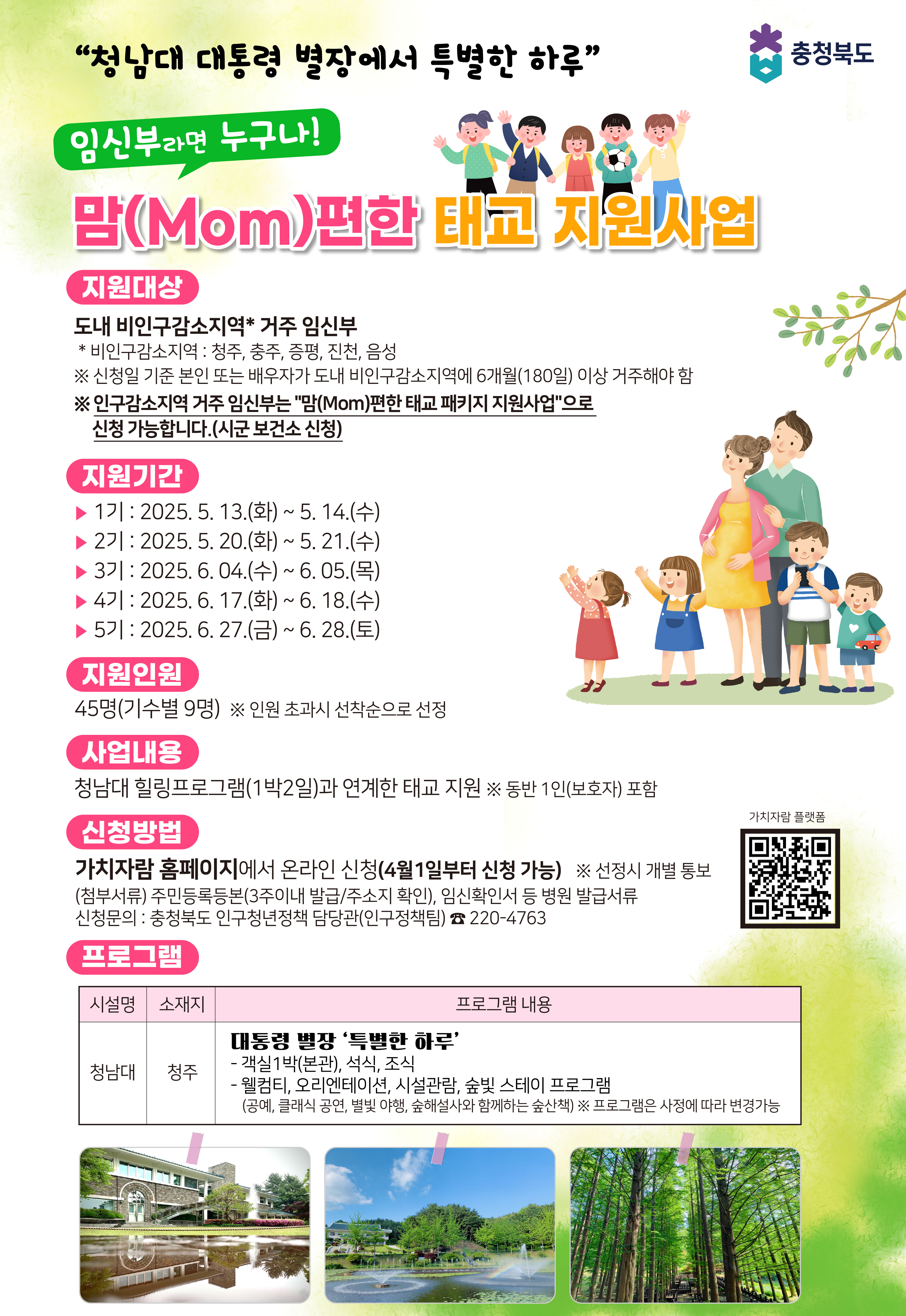 임신 기간은 여성에게 가장 특별하면서도 민감한 시기입니다. 충청북도가 제공하는 이 태교여행은 단지 쉼이 아닌, 나와 아기 모두에게 주는 소중한 선물입니다. 지금 바로 신청하시고 그 가치를 직접 경험해보세요!