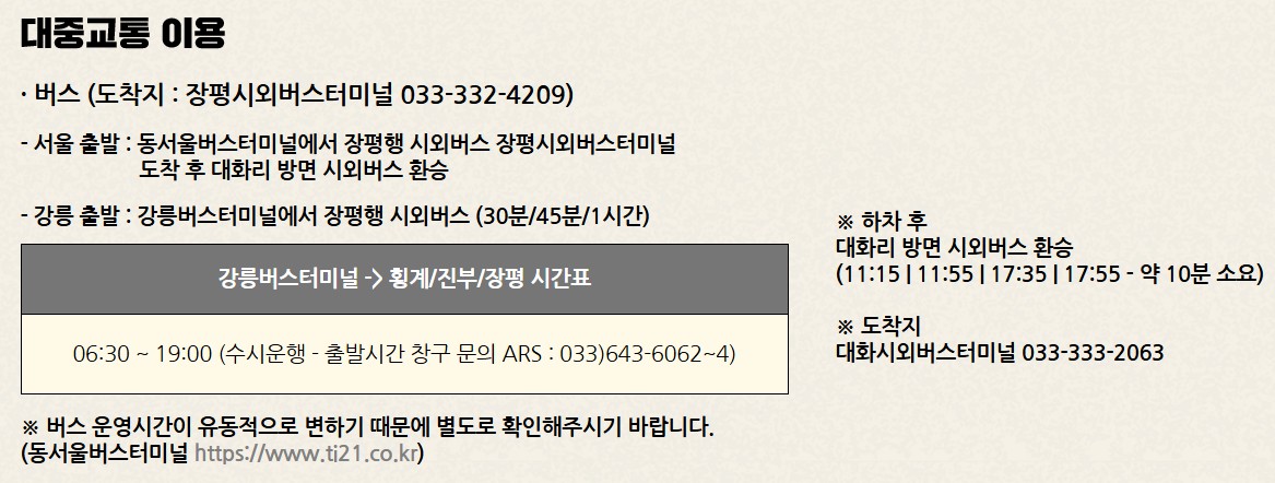 또한 평창군 대화면 지역 주민은 신분증 제시 시 입장 무료 혜택을 받을 수 있습니다.