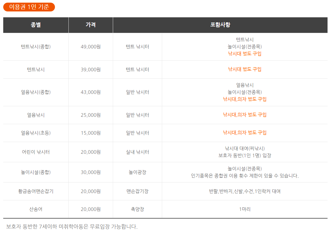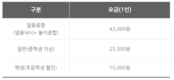 얼음낚시 이용요금