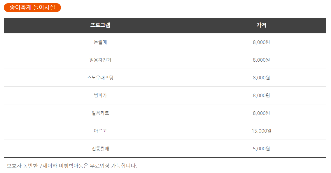 평창 송어 축제 가격표