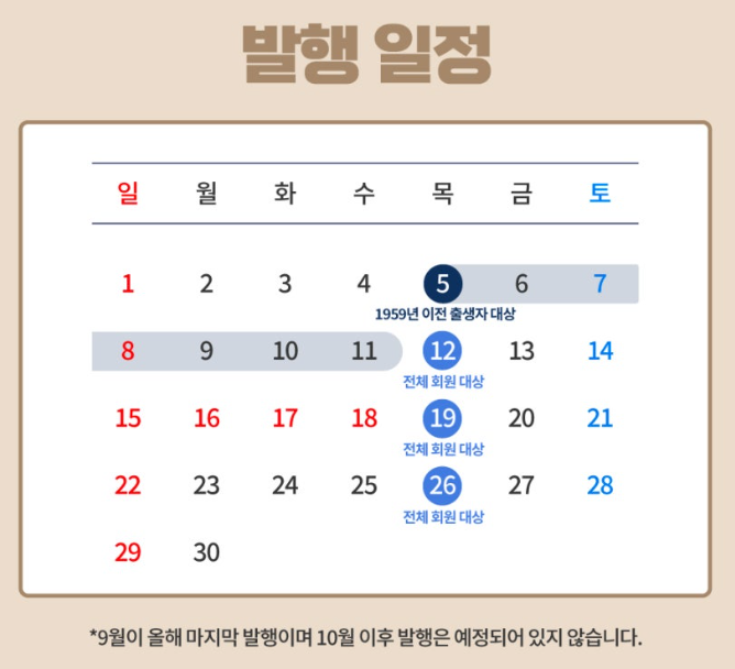 9월 5일부터 9월 11일까지 1959년 이전 출생 회원만 구매가 가능합니다.