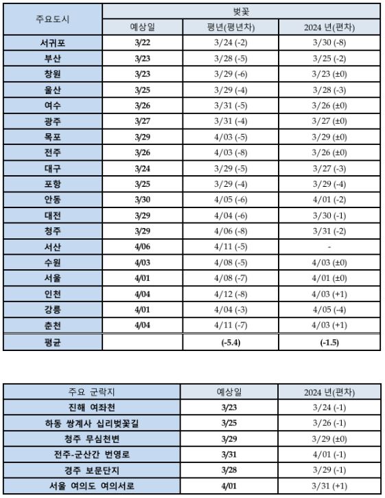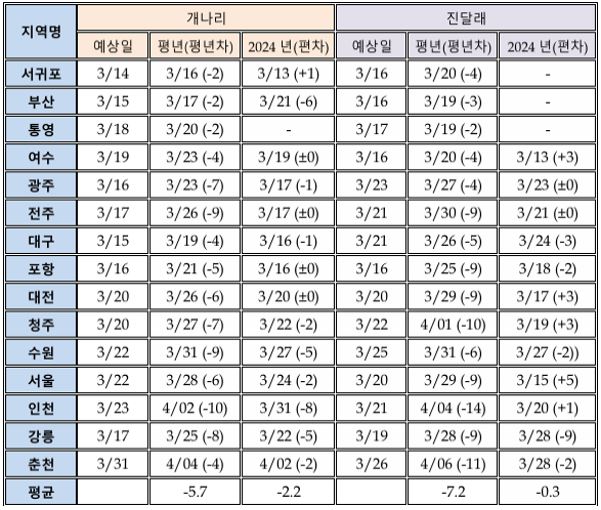 지역별 벚꽃 개화 시기