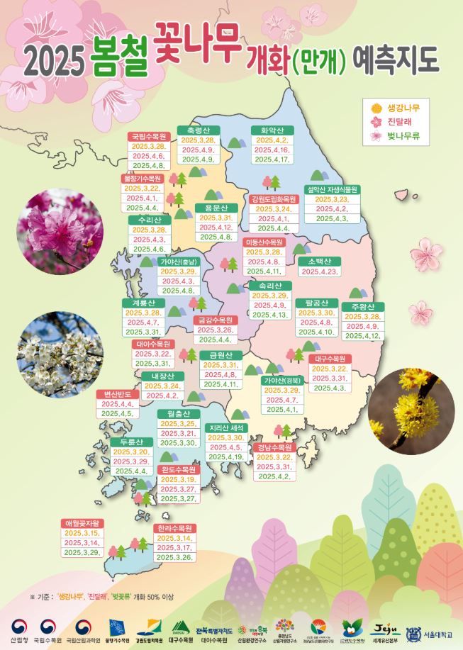 2025년의 벚꽃 개화 시기는 예년과 비슷하게 진행될 것으로 예상됩니다. 기상청의 예측에 따르면, 제주도에서 시작하여 남부 지방, 중부 지방, 그리고 북부 지방으로 순차적으로 개화가 이루어질 것으로 보입니다.