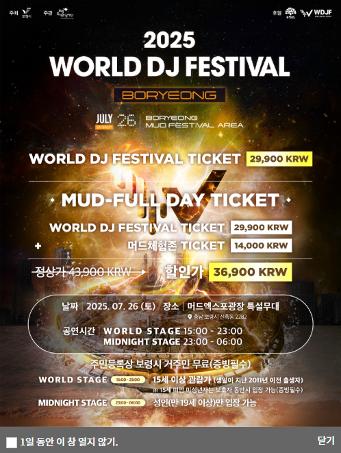 | 월드디제이페스티벌 (유료) | 7.26(토) | 엑스포광장 |
