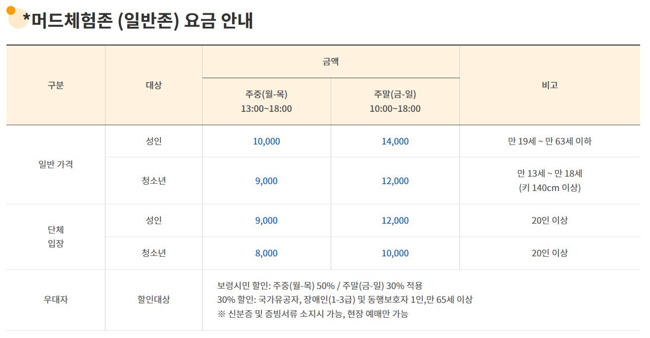 | 일반존 | 성인 | 10,000원 | 14,000원 |