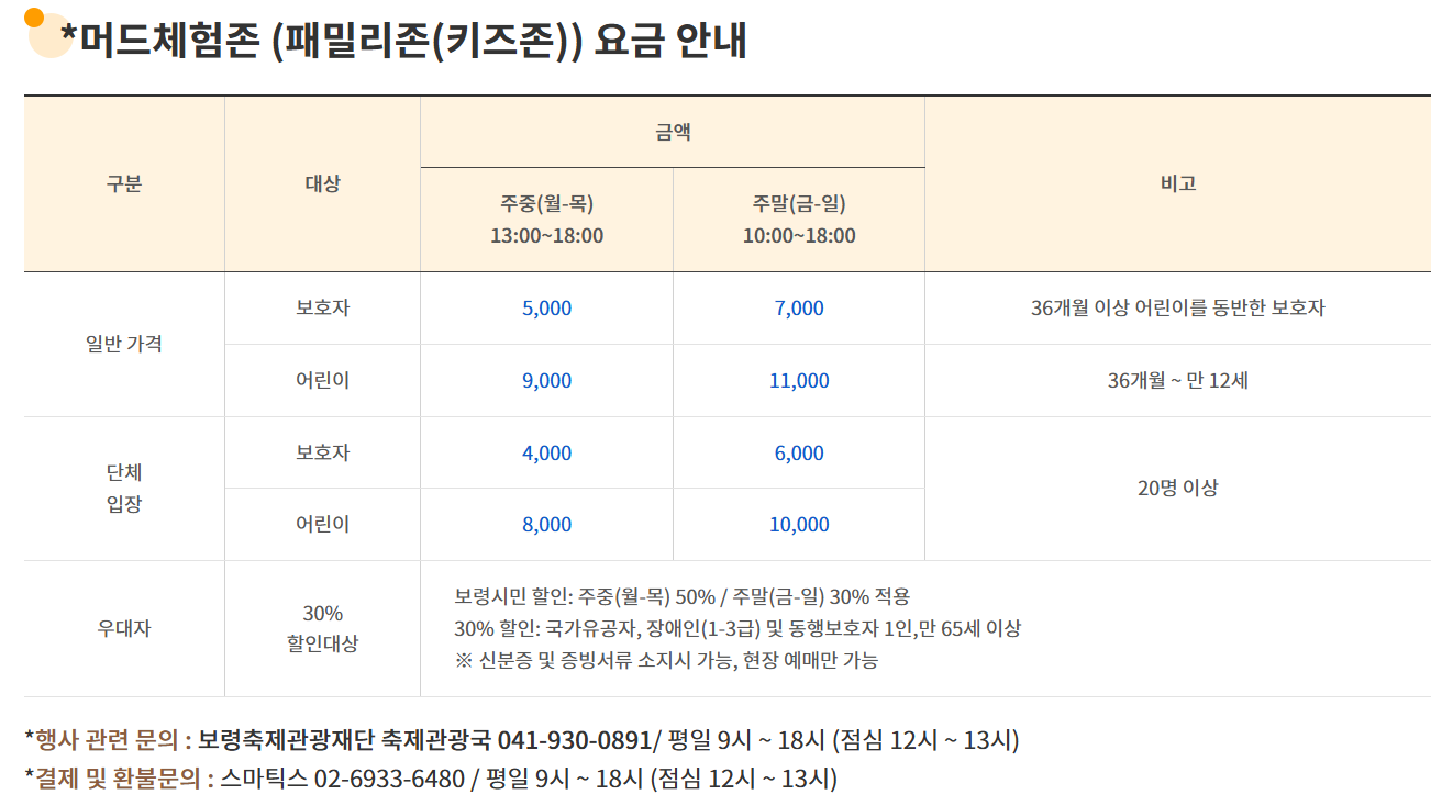 보령시민, 국가유공자, 장애인 등은 현장 예매 시 최대 50% 할인 적용(신분증 지참 필수)