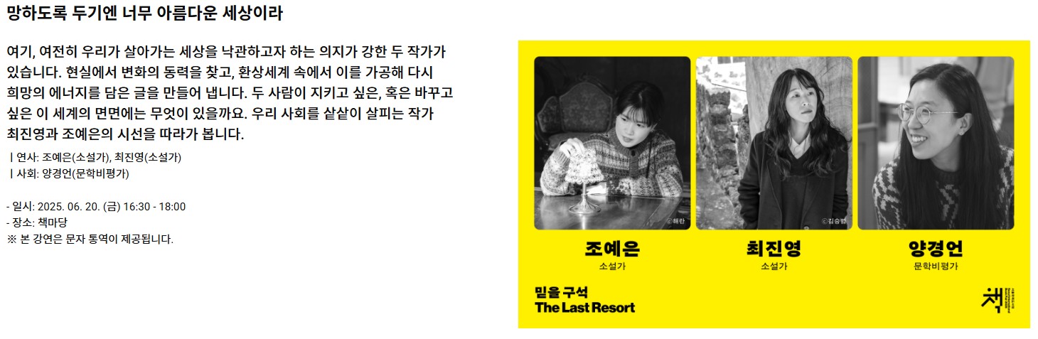 ‘믿을 구석 - 더 라스트 리조트(The Last Resort)’라는 주제로 열리는 2025 서울국제도서전은 단순한 전시를 넘어선 이야기의 축제입니다.