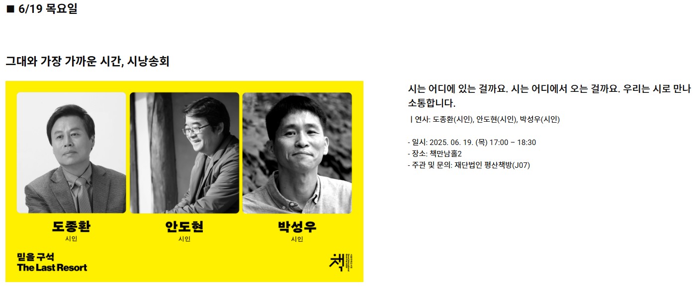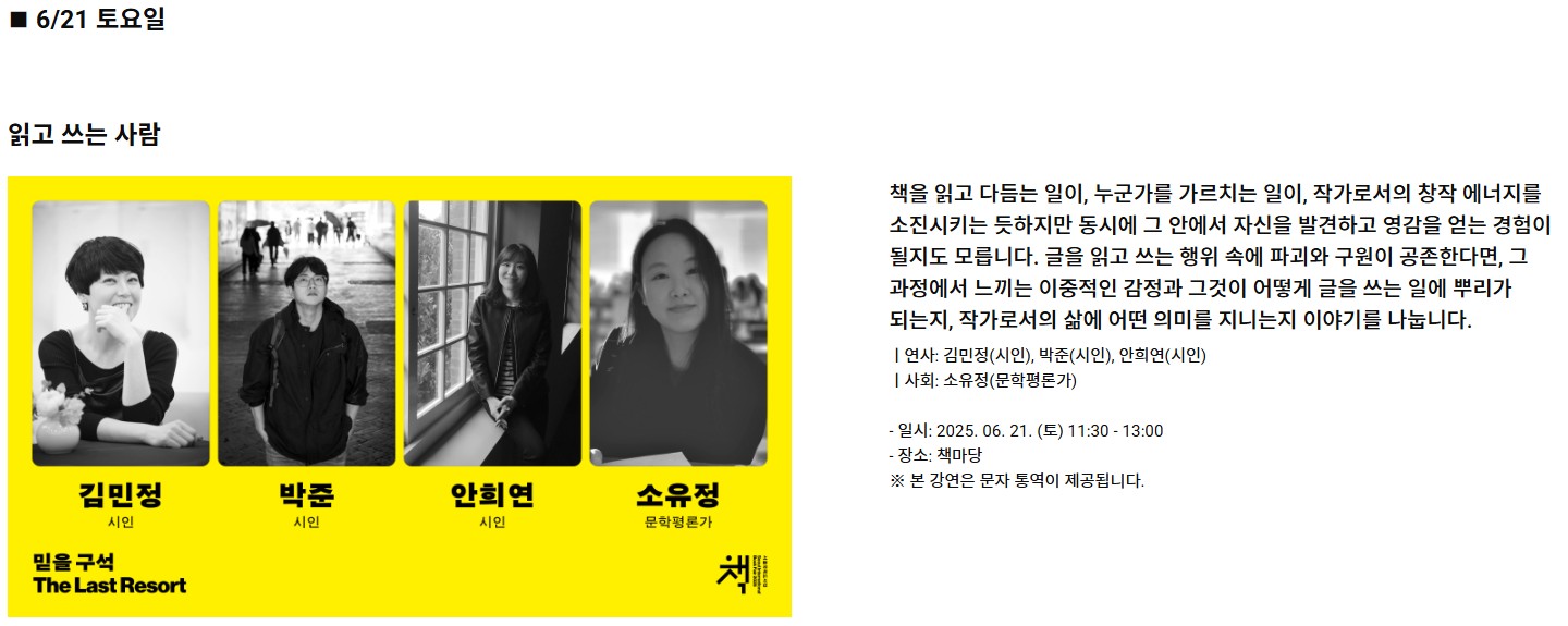 이 특별한 5일간의 축제를 놓치지 마세요. 책을 통해 다시 사람을 만나고, 세상과 연결되는 순간을 경험해보시길 바랍니다.