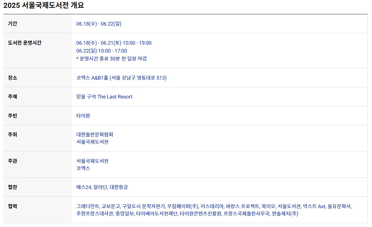 | 행사명 | 2025 서울국제도서전 |