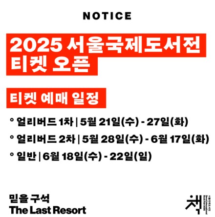 혼란한 시대 속, 책은 여전히 우리에게 믿을 구석이 됩니다. 서울국제도서전은 그 ‘구석’을 함께 발견하는 자리입니다.