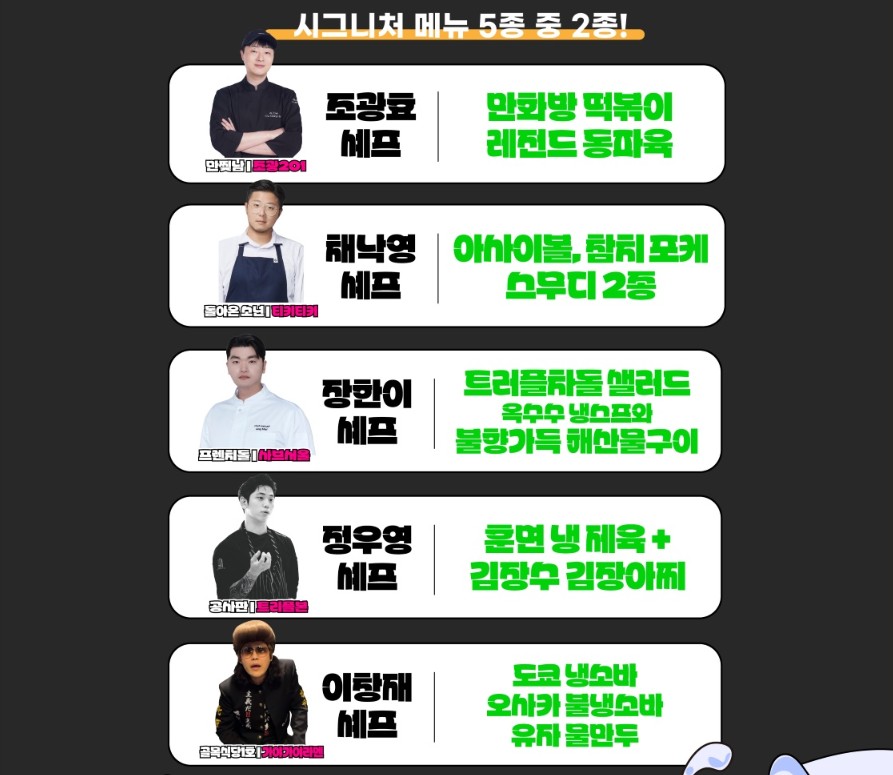 | 흑수저 셰프 시그니처 음식 | X | O | X |