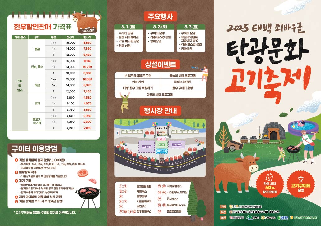2025 태백 쇠바우골 탄광문화 고기축제, 한우 최대 40% 할인과 다채로운 체험! 3일간만 펼쳐지는 특별한 기회, 지금 바로 계획 세우지 않으면 후회할 수 있습니다.